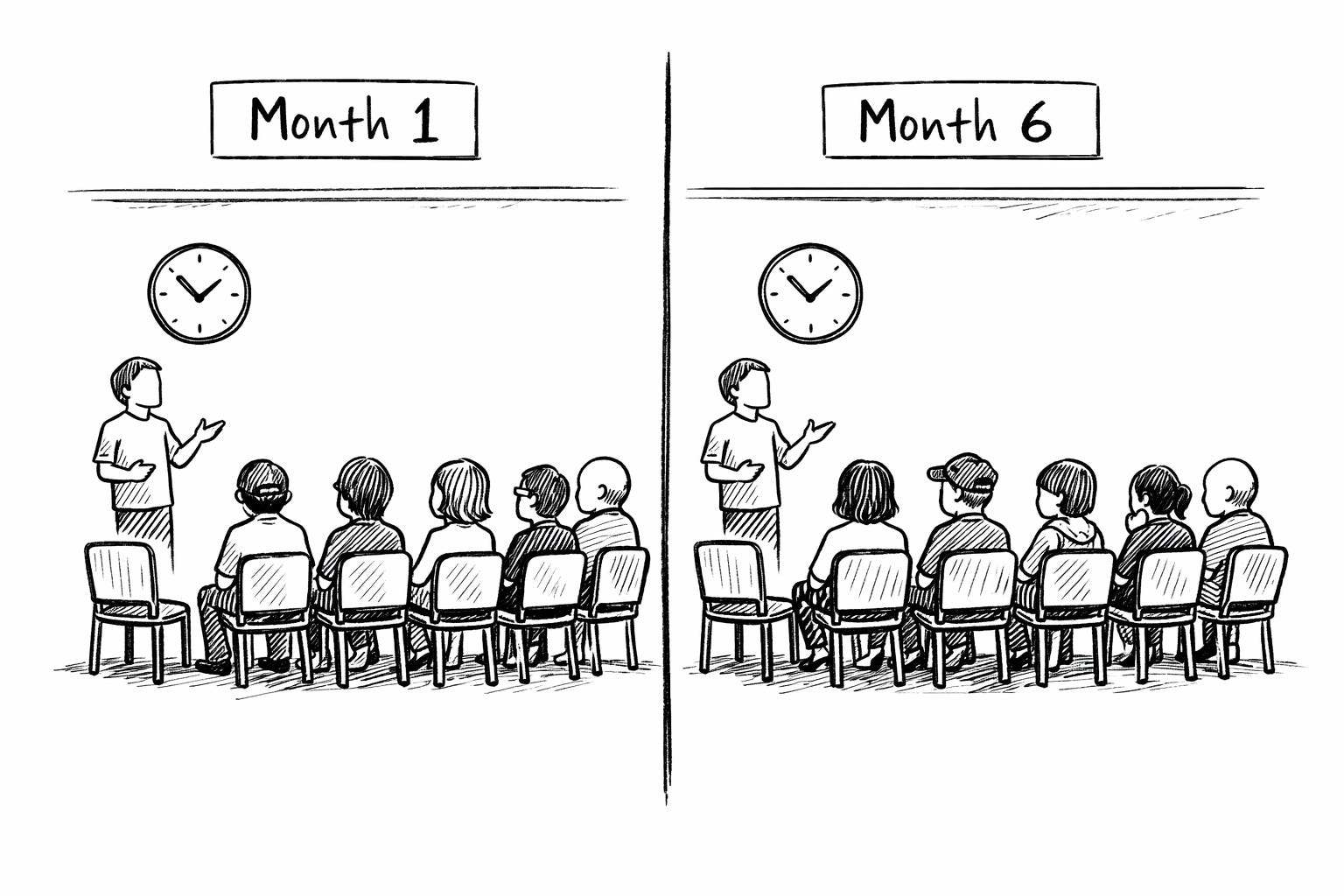 Consistency operates inside the room. Growth happens outside it.